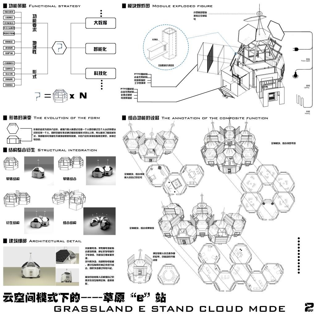 竞赛评审委员会由中国工程院院士、全国建筑设计大师、各知名建筑院校院长等十七位业内专业人士组成。中国科学院院士何镜堂任评审委员会主任。共评选出106个入围作品,其中一等奖1项,二等奖6项,三等奖11项以及优秀奖88项。在我院张广媚、 杨雪 老师悉心指导下,2012级建筑学专业路琦、邢明阳同学的设计作品《云空间模式下的——草原“e”站》脱颖而出荣获三等奖,金旭涛同学的设计作品《街巷里的小秘密——夜市生活空间的重构与新生》荣获优秀奖。