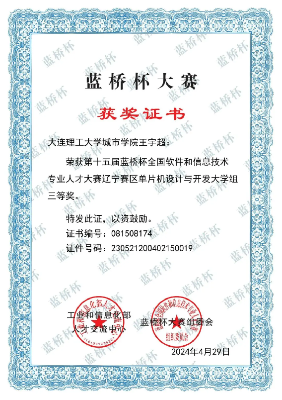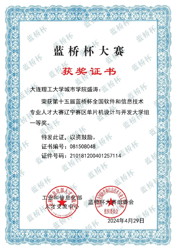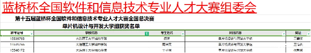 在第十五届蓝桥杯全国软件和信息技术专业人才大赛的省赛中,电子与自动化学院的参赛选手们凭借扎实的实力和不懈的努力,共计荣获22项奖项,其中一等奖3人、二等奖3人、三等奖16人。其中,于子珺同学、周津民同学、盛涛同学参加国赛,共荣获国家级三等奖两项和国家级优秀奖一项,为学院争得了荣誉。