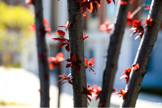 素面粉黛浓,玉盏擎碧空。初开的樱花、桃花、梨花、杏花晶莹剔透地点缀在嫩绿丛中。5号、8号宿舍前,紫玉兰开得热烈、妖娆,绚烂的色彩为静谧的校园平添了一份华贵之气。而旁边的那几丛白玉兰,远远望去,像极了还未消融的冰雪,挂满了枝头,宛如穿着一身白衣的少女,在春风中翩然起舞。